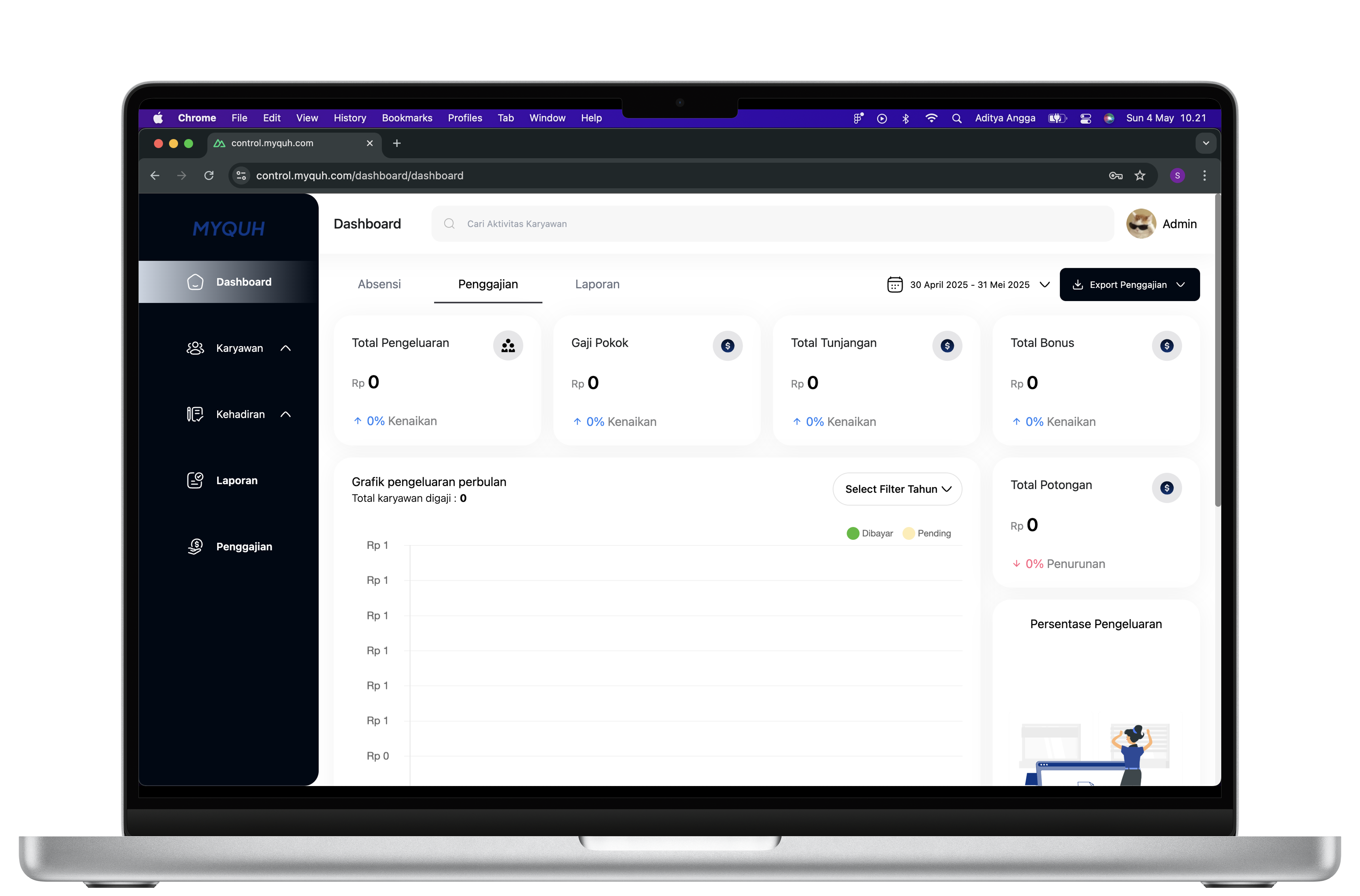 Tidak semua perusahaan punya struktur gaji yang sama — karena itu, sistem penggajian kami dibuat fleksibel. Sesuaikan komponen gaji seperti gaji pokok, tunjangan, bonus, dan potongan hanya dengan beberapa klik di admin panel.